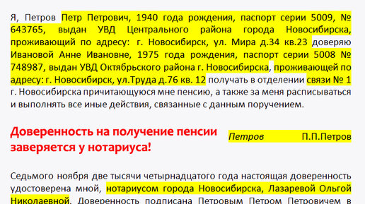Доверенность на получение пенсии. Скачать бланк и образец заполнения