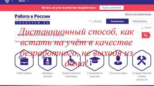 Дистанционно оформить пособие по безработице легко и быстро если знать как. По моей инструкции вы всего за 15 минут отправите заявление в ваш центр занятости населения. Итак, начнем. Вам понадобиться смартфон, планшет или компьютер(на смартфон или планшет можно скачать мобильное приложение "Работа в России" доступно для андроидов и эпл стор). Так же вам потребуется подтвержденная учетная запись на портале "Госуслуги"(как зарегистрироваться и подтвердить учётную запись в последующих постах). Далее авторизуемся на портале "Работа в России" сайт trudvsem...