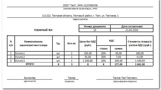 Товарный чек: образец заполнения в 2024 году