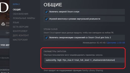 Настройка "параметров запуска" DOTA 2 для повышения производительности 2022