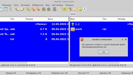 Упаковка архивов В Double Commander есть возможность упаковать файлы или каталоги при помощи контекстного меню - нужно выделить файлы для упаковки, нажать правую кнопку мыши (см. рисунок ниже). Открывается окно "Упаковка файлов", где пользователь может выбрать разные архиваторы и форматы архива. Однако, формат файла rar не будет поддерживаться, если не установлен пакет rar. Для установки rar в Ubuntu используется команда: sudo apt install rar Распаковка архивов По умолчанию файловый менеджер DoubleCommander в Linux не может "открывать" архивы rar и 7z...
