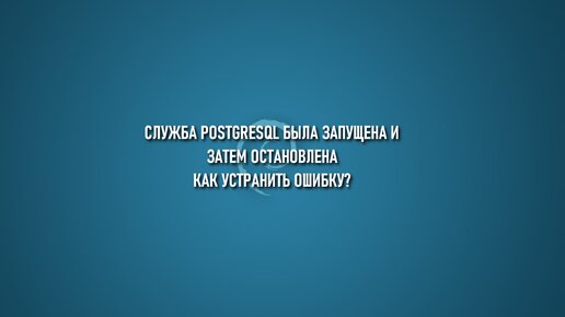 Сообщение при запуске службы postgresql: "Cлужба postgresql была запущена и затем остановлена" как устранить?