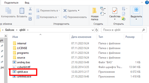 Язык программирования Бейсик идеально подходит для обучения начинающих. Из всех версий языка наибольшее распространение получил QBasic. Мы для обучения программированию будем использовать QB64. Для того, чтобы начать программировать, достаточно скачать архив, распаковать его в любое место на своем компьютере и запустить файл qb64.exe. Вполне возможно, что вы в папке увидите qb64, а не qb64.exe. Это – то же самое...