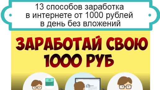 Многие пытаются найти подработку, а кому-то не удается найти и постоянно место работы, тогда начинаются более глубокие поиски. Вариант удаленного заработка должен рассматриваться как приоритетный. Почему? Потому что в интернете двери открыты для каждого и на старте совсем не обязательно что-то инвестировать. Мы собрали 13 способов заработка в интернете от 1000 рублей в день без вложений, которые в данный момент являются самыми интересными. Все они проверены, работают и подходят людям с разными возможностями, интересами и знаниями...