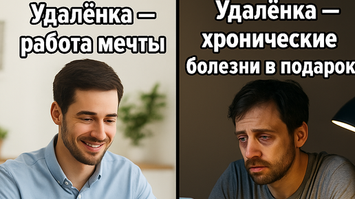 Когда я уходил из офиса, я был уверен: здоровье точно станет лучше. Никаких пробок, стрессов от начальства, корпоративных перекусов. Но через год удалёнки я понял: моё здоровье стало хуже. Боли в спине, лишний вес, бессонница и постоянная усталость. И я понял: удалёнка — это не про здоровье, а про испытание. Если не следить за собой, она разрушает медленно, но верно. Фрилансеры сидят по 8–12 часов в день. Часто — на диване или за кухонным столом. В итоге: остеохондроз, боли в шее, сутулость.