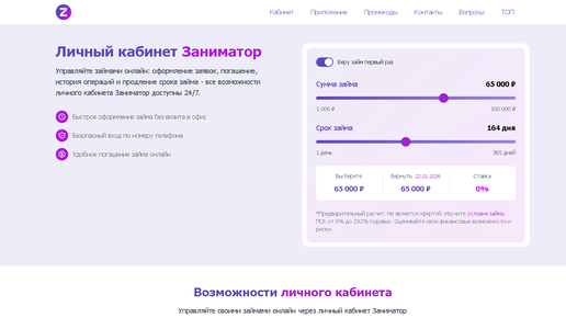Личный кабинет Заниматор | Как зарегистрироваться и подать заявку на займ
