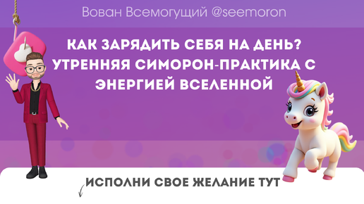 (Там всё, что нужно: симорон, поддержка, магия и девочки на одной волне) Если утро у тебя начинается с усталости, апатии или просто не хочется вставать — притормози. Сегодня дам тебе лёгкую практику, которая работает как душ для души...