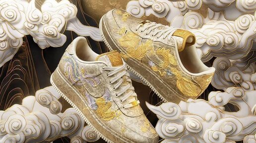 Хочу показать вам красивейшие Nike Air Force 1 Low CNY, посвященные китайскому Новому Году! 🐲 Эти Форсы не хочется носить на ногах. Это музейный экспонат, который хочется рассматривать с задумчивым лицом. Силуэт расшит золотой нитью в форме дракона с фиолетовыми и серебряными деталями, летящего на фоне паттерна из цветов лотоса. Бежевые тона основы отлично гармонизируют активное золото, искореняя его вычурность. Кстати, модель будет выпущена исключительно для китайского рынка, и исключительной в женском размере...