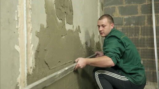 Чтобы получилось идеально ровно. Чтобы заштукатурить загрунтованную стену с выставленными маяками, в первую очередь следует приготовить раствор. Для этого засыпать цемент в ведро с водой. Тщательно перемешать до консистенции густой сметаны. Оставить раствор на 2-3 минуты. При помощи шпателя накидать раствор на стену. Приложить провило к двум маякам и протянуть снизу вверх. При выравнивании стены осуществлять движения провилом вправо-влево. Финишные движения следует осуществлять ровно снизу вверх, чтобы получить ровную стену...