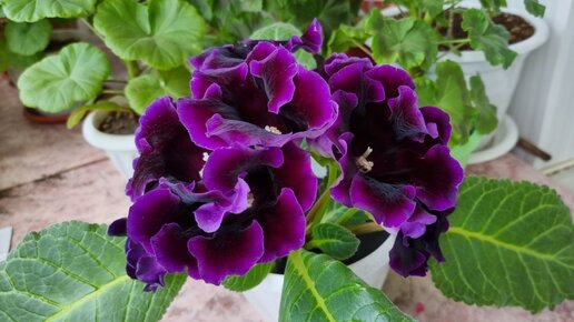 Глоксинии обожаю выращивать. На мой взгляд к глоксинии просто найти подход, это благодарные цветы порадуют хозяйку роскошными бархатистыми крупными цветами - колоколами даже при простом уходе. В этом году мне удалось добиться пышного цветения глоксиний «шапочкой», когда одновременно раскрывается над розеткой крупных листьев не 2-3 цветка, а большинство сформированных бутонов. Фиолетовую глоксинию я вырастила из купленного клубня, как сажала его смотрите тут. Эта глоксиния одновременно раскрыла 9 цветков, они были очень крупные до 10 см в диаметре...