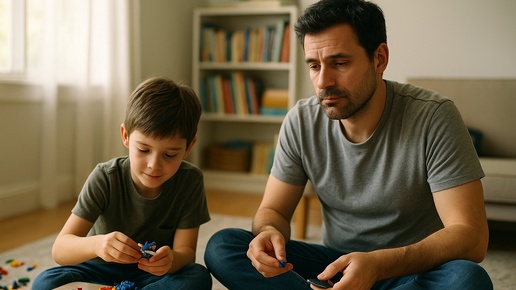 Привет, это Папа. В прошлую субботу я сидел на полу в детской. Каноническая отцовская сцена: вокруг — минное поле из Lego, Старший (6 лет) строит какой-то невероятный космопорт, Младший (2,5 года) сосредоточенно грызет шасси от лунохода. Я честно пытался "играть". Я взял несколько деталей, присоединил их к общей постройке, издал "вжжж!" и даже "пиу-пиу!". Я выполнял все ритуальные действия "хорошего, вовлеченного отца". И в какой-то момент Старший, не отрываясь от своего творения, вдруг сказал: "Папа, ты играешь не по-настоящему"...