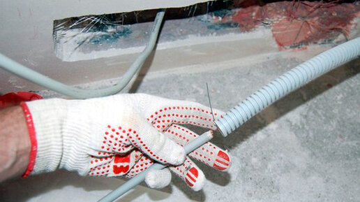 Электрик показал, как протянуть провод в гофру, если в ней нет проволоки