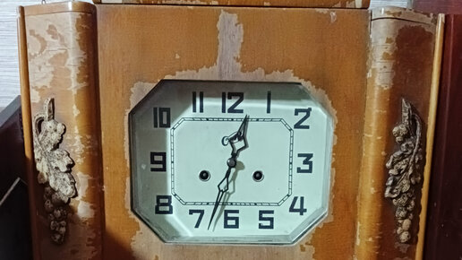 Доброго времени суток! Вот такой раритет принесли ремонтировать. Часы не ходят. Жизни конечно они повидали. Также у часов отсутствуют струны - ну это такие стержни по которым молоточки бьют. К великому сожалению бой я им восстановить не смогу, нет таких запчастей))), будут просто как ходики - время показывать. Владелец не против. Открутил механизм. Дата выпуска 1963 год. Часы заведены до упора - нужно спустить пружины хода и боя. Делать это нужно осторожно - пружины достаточно тугие- можно получить ключом по пальцам...