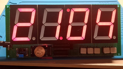 Всех приветствую! Решил на дачу сделать часы. С большими цифрами. И повесить над входной дверью. Кого сейчас удивишь электронными часами? Никого. Любой радиолюбитель однажды собирал электронные часы. Так что это заметка о том, как я сделал очередные электронные часы. Нарисовал схему: Несмотря на то, что применяется микросхема со встроенным термометром, температура отображаться не будет. Нет надобности. Индикаторы заказал самые большие, которые смог найти - 2,3". Размещаться все элементы будут на макетной плате размерами 220х100мм...