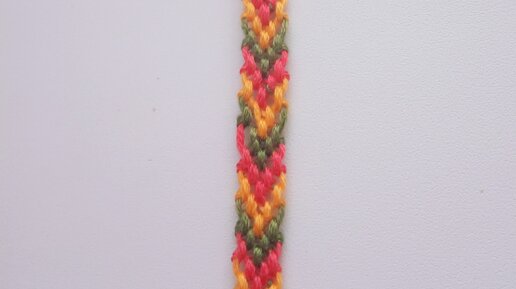 Ничего сложного в этом нет,особенно если вы посмотрели мою предыдущую статью Берём 6 ниток трёх цветов, завязываем в такой узел,чтобы можно было потом развязать, позже объясню почему. Закрепляем скотчем и распределяем таким образом: Берём крайнюю нить и делаем 2 узелка, со следующей нитью так же и останавливаемся на середине. Теперь берём другую крайнюю нить,но теперь завязываем другой стороной, зеркально. Когда 2 зелёные нити встретились, делаем 2 узелка, главной нить будет та которая была в начале...