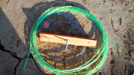 Задумал изготовить бельевую верёвку из пэт бутылок, сказал супруге, а она не верит, вот мой шанс её удивить и порадовать. Скажите в чём тут радость, но у женщин во дворе просто спорт какой-то, кто раньше займёт бельём все верёвки. Изготовление В своё время сделал бутылкорез для пластиковых бутылок, он распускает их на ленты, из которых можно делать полезные вещи. Но жена в пользу не верит, до меня дошло, это потому, что ей лично ничего не изготовил, надо исправлять. Ленты растянул во дворе, осталось...