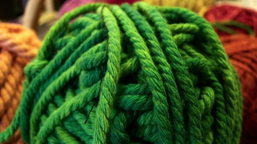 Использовать можно любую нитку примерно такого зеленого оттенка как на фото, подойдут и шерстяные и ирис, и мулине, и веревочка такого цвета и швейные в несколько сложений...