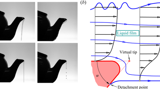 Оказывается, еще в сентябре 2021 года в кембриджском «Журнале механики жидкости» (Journal of Fluid Mechanics) была опубликована статья, в очередной раз описывающая «эффект чайника». Известный в простонародье как «Эффект Коанда». Так называется свойство струи жидкости при вытекании из сопла отклоняться в направлении стенки, а в некоторых случаях и прилипать к ней. В случаях с чайниками этот эффект проявляется в огорчительном и неаккуратном стекании части чая по нижней части носика при разливании чая по чашкам...