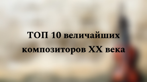 10 величайших композиторов XX века:  1. Игорь Стравинский (1882–1971) был русским композитором. Он известен своими балетами «Петрушка», «Весна священная», а также оперой «Соловей». Его музыка отличается новаторством и экспериментальностью.  2. Дмитрий Шостакович (1906–1975) был русским композитором. Он известен своими симфониями, такими как Седьмая («Ленинградская») и Пятая, а также операми «Леди Макбет Мценского уезда» и «Катерина Измайлова». Его музыка отличается драматизмом и эмоциональностью...
