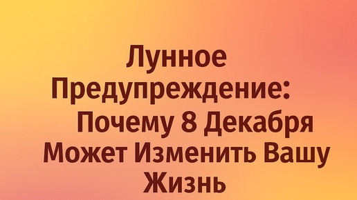Лунное Предупреждение: Почему 8 Декабря Может Изменить Вашу Жизнь и Кому Лучше Остаться Дома?
