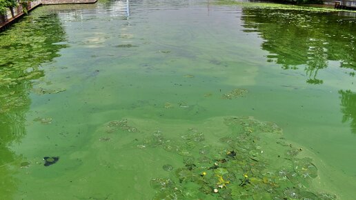 Необычный вид приобрело на днях Химкинское водохранилище, расположенное в северо-западной части Москвы: его вода окрасилась в ярко-зелёный, практически кислотный цвет.