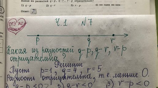 ОГЭ пр математике: какая разность отрицательна (ч. 1 номер 7)