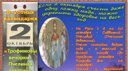 2 октября - Приметы, обычаи и ритуалы, традиции и поверья дня. Все праздники дня во всех календарях.