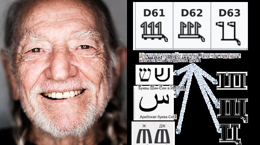 На примере букв Ш, Щ и Ц в русской азбуке, букв Шин в иврите, Син в арабском алфавите, Шай в коптском алфавите, отчетливо видно их происхождение от одного символа, египетского иероглифа который означает зубы. В списках египетских иероглифов Гардинера, есть три иероглифа в разделе "Части тела" похожих на буквы Ш,Щ и Ц. Под номерами 61, 62, 63. почему-то он называет их "Пальцы ног"(?), "Три пальца ног повернутые вправо, Три пальца ног повернутые влево и Два пальца ноги". Что он имел ввиду вообще...