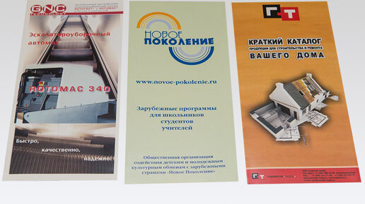 Буклеты — это один из наиболее популярных видов печатной продукции, незаменимый при проведении презентаций и рекламных акций. Независимо от вида, буклеты имеют общую особенность. У них нет дополнительных элементов крепления, и разделение на страницы осуществляется с помощью сгибов бумаги определенным образом. Благодаря такой форме, на буклетах удобно размещать информацию в большом объеме и делать ее максимально доступной для восприятия читателей. Буклеты удобно хранить, переносить и посылать по почте, не боясь испортить...