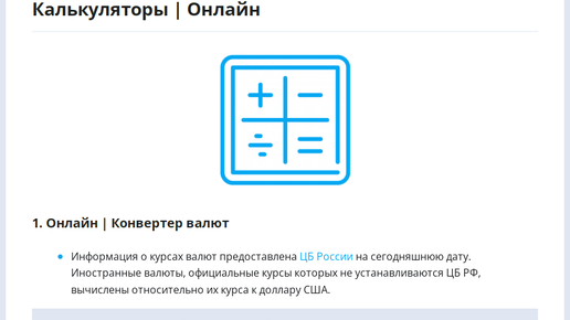 Онлайн-калькуляторы | В различных финансовых и бытовых сферах: 1. Конвертер валют - это инструмент, который позволяет пользователям преобразовывать сумму одной валюты в другую по текущему обменному курсу. 2. Калькулятор микрозаймов - помогает рассчитать сумму займа, срок и процентную ставку. 3. Кредитный калькулятор - предназначен для расчета ежемесячных платежей по кредитам различного типа. 4. Калькулятор автокредита - позволяет рассчитать стоимость автокредита с учётом процента и срока кредитования...
