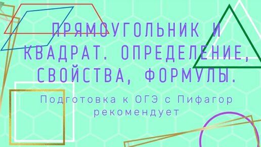 Прямоугольник и квадрат. Определение, свойства, формулы. Подготовка к ОГЭ с Пифагор рекомендует.