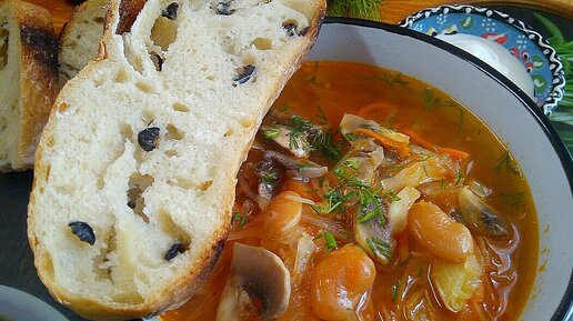 Вкусные, ароматные супы на обед - это польза для всего организма. Супы нужны и детям, и взрослым. И если, по какой-то причине, вы не любите суп (или ваши домочадцы), значит вы не нашли пока свой вариант. Вот еще несколько рецептов вам на пробу. Или в копилку! Суп с капустой, фасолью, грибами Лучше всего такой суп готовить на нежирном, курином бульоне. Тогда он не только очень вкусный, но и полезный для фигуры и общего оздоровления! Варим куриный бульон, убираем косточки, а мясо возвращаем обратно в кастрюлю с бульоном...