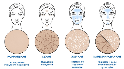 Сегодня я расскажу: Существует четыре типа кожи: жирная, комбинированная, нормальная и сухая. К каждому нужен индивидуальный подход и выбор косметики. Тип кожи зависит от количества выделяемого кожного сала — себума. Начнём с ЖИРНОЙ кожи. Это тип с излишним выделением кожного себума, а так же расширенными порами. Из-за большого количества кожного сала кожа подвержена высыпаниям, появлению черных точек и сальных нитей. Так же на жирной коже не всегда ровный рельеф. Признаки жирной кожи: Комбинированная кожа: признаки Такой тип кожи требует особого подхода и выбора ухода...