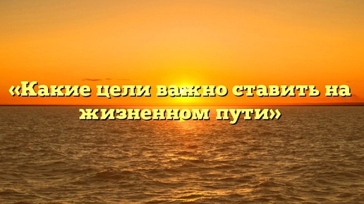 «Какие цели важно ставить на жизненном пути