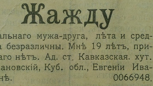 На днях мне попалась подборка брачных объявлений из дореволюционных российских газет. Вы, вероятно, полагаете, что лишь в наше время люди знакомятся на расстоянии, посредством интернета? Однако уже сто лет назад люди практиковали дистанционные знакомства, пусть и в несколько ином формате. Если рассматривать переписку как форму удалённого общения, то это было почти «онлайн» уже тогда. Итак, поехали Джентельмен ищет "барышню безъ прошлаго". Нужна молодая и симпатичная(дивно сложенную). Требует фото(ну а как же)...
