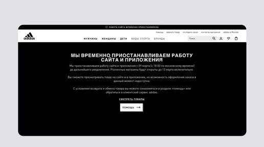 1. Интернет-магазин спортивных товаров Adidas Пользователь может просматривать каталог на сайте и в приложении, но оформить заказ не получится. Когда клиент открывает карточку товара, вместо кнопки «Добавить в корзину» он увидит объявление «Работа сайта временно приостановлена». 2. Интернет-магазин нижнего белья Victoria’s Secret Пользователь может просмотреть каталог и добавить товары в корзину. Но интернет-магазин убрал кнопку «Оформить заказ». И разместил объявление, что временно не работает...