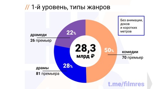 Привет, друзья! Сегодня мы поговорим о том, какие жанры кино на самом деле популярны в России. Не секрет, что многие считают, будто зрители интересуются исключительно фэнтези-сказками, но это далеко не так. Согласно анализу прокатных сборов 2025 года, фэнтези занимает лишь 40% кассовых сборов российских премьер. Это большая доля, но не единственная. Почти половину рынка составляют комедии. А три супержанра — фэнтези, фильмы «про жизнь» и военные фильмы — собрали более 75% сборов в 2025 году. Особенно это заметно в год юбилея Победы, когда выходили фильмы на военную тематику...