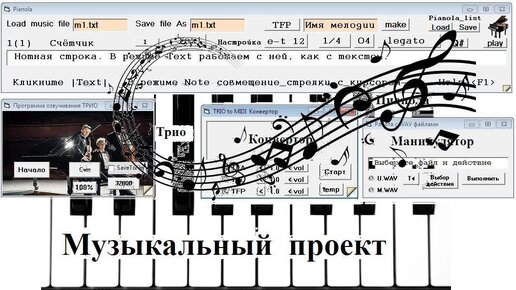 Он развивался на протяжении 3-х лет, и практически с нуля. До его начала, то есть в конце 2014-го года, я о синтезе музыкального звука совершенно ничего не знал. И задачи у меня вначале были очень скромными - имея навыки программирования в Бейсике, я хотел сделать на клавишах компьютера что-то вроде пианино.
