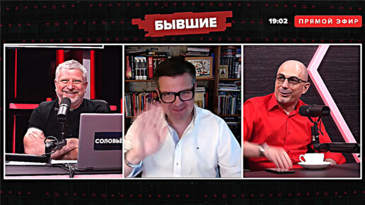 МБлог5174 читали · 5 лет назадПодписатьсяФорматы передач «Соловьев live»: «бывшие», «стена Сосновского», «СМЕРШ» Багдасарова, «профессор смотрит в міръ» Дмитрия евстафье