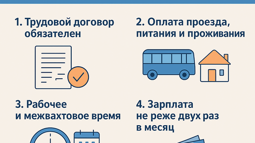 Работа вахтовым методом — это когда человек живёт и трудится вдали от дома, обычно по графику “месяц через месяц” или “15 через 15”. Кажется, что всё решает работодатель — но на самом деле закон стоит на стороне работника. Давайте разберёмся, какие права есть у вахтовика по Трудовому кодексу РФ и как их защитить. Любая вахта должна оформляться официально. У вас должен быть трудовой договор, где указаны: 👉 Если вас просят «подписать договор подряда» или «просто выйти, потом оформим» — это тревожный сигнал...