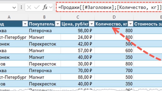 При работе с обычными диапазонами в формулах указываются абсолютные или относительные ссылки на ячейки и такой способ адресации понятен всем пользователям Эксель, которые освоили его на базовом уровне. А вот адресация в умных таблицах до сих пор непонятна многим, поэтому давайте разберемся в этом вопросе. К примеру есть рабочая таблица учета заказов и необходимо получить данные по общей сумме заказа конкретного покупателя из определенного города. Для этого идеально подходит функция СУММЕСЛИМН. Указываем диапазон суммирования, затем диапазоны условий и само условие...
