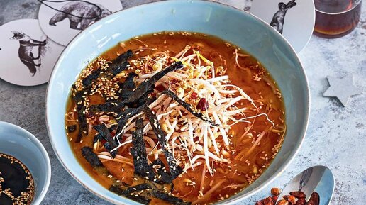 Ингредиенты: 6–8 ст. л. мисо-пасты (светлой или темной) 100 г любых проростков 4 больших листа водорослей нори 4 ст. л. семян кунжута темное кунжутное масло соевый соус хлопья красного острого перца ⠀ Приготовление: 1. Нарежьте водоросли нори ножницами на удобные для еды короткие широкие полоски. 2. Обжарьте кунжут на сухой сковороде без масла на среднем огне, примерно 1,5 мин...