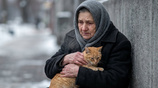 Бездомная старушка прижимала кошку и плакала — они замерзали на улице
