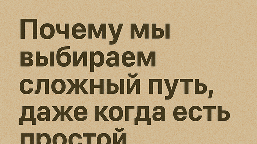 Иногда жизнь подбрасывает ситуации, где решение кажется очевидным. Можно сделать быстро, легко, без боли. Можно выбрать короткий путь, принять помощь, снизить нагрузку. Но многие из нас почему-то делают наоборот — усложняют маршрут, выбирают обходной вариант, добавляют обязанностей, хотя могли бы этого избежать. Мы говорим себе: «Так надёжнее», «Так правильнее», «Так заслужено». А иногда просто не замечаем, что идём сложной дорогой — будто нас туда кто-то внутренне направляет. Создаётся ощущение, что простой вариант словно “не считается”, не подходит, вызывает сомнения...