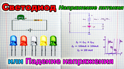 Питание Светодиода или падение напряжения на нем ПАДЕНИЕ НАПРЯЖЕНИЯ И ПОСЛЕДОВАТЕЛЬНОЕ СОПРОТИВЛЕНИЕ СВЕТОДИОДА И РЕЗИСТОРА ДЛЯ ПРАВИЛЬНОГО ПИТАНИЯ Эту тему разберем на примере слаботочных светодиодов с током до 20 мА. Подобно обычному диоду, светодиод управляется током, и при переводе в режим прямого смещения возникает определенное падение напряжения. Прямое падение напряжения (V F ) колеблется от 1,2 В до 4,0 В и зависит от типа светодиода. Светодиод начинает светится, когда на него подано напряжение, превышающее прямое падение напряжения...