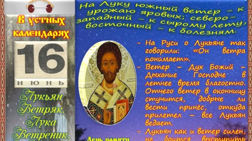 16 июня - Традиции, обычаи и поверья, связанные с этим днём. Все праздники, которые отмечаются в этот день в разных календарях.