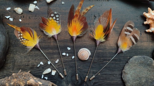 Смотрите, какое перьевое великолепие)) Привет из жарких тропиков! Несколько лет мастерская Кторовы рукоделки работала во Вьетнамских лесах, насобирала там пёрышек местных птичек - а теперь привезла всю эту красоту в нашу зимнюю Москву. Яркие серёжки, брошки, кулоны, палочки в волосы, бусы, перья для письма, ... много всего. Приходите выбирать! И кстати среди тропических пёрышек есть даже наша родная ворона!...