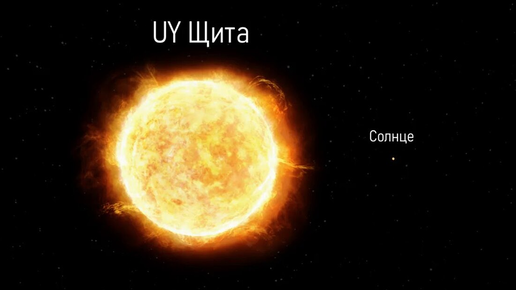 Некоторое время титул самой большой известной звезды удерживала UY Щита (UY Scuti). Это переменный гипергигант с предполагаемым радиусом примерно в 1700 раз больше радиуса Солнца, расположенный в 9500 световых годах от нас. Однако в 2023 году астрономы поставили это под сомнение, предложив пересмотреть радиус звезды и уменьшить его примерно до 900 радиусов Солнца, что вывело бы UY Щита из списка десяти крупнейших звёзд. С тех пор титул перешел к другой звезде, WOH G64, обнаруженной в Большом Магеллановом Облаке (БМО), спутнике нашей Галактики...