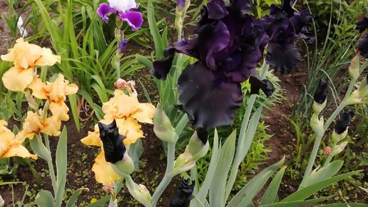 За три года цветочного "перехапа" в моем саду завелось несколько черных цветов. Ну, как черных? Черные они - только на отфотошопленных картинках с упаковки. На самом деле у так называемых черных цветов есть три "нормальных" цвета. Это оказалось важным при попытках объединения в композиции. Если основной цвет не того оттенка, то ничего и не клеится. Синий "черный" У меня это ирис бородатый и по хорошему он миксуется только с чем-то белым. Чего я к нему только ни прикладывала. Растет в компании других ирисов и выглядит там как ведьма на крестинах...