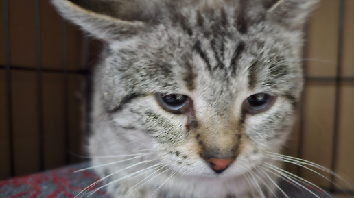 "Здравствуйте. Меня зовут КотЯ. Если мне дадут жизнь, я бы хотел просто лежать у вас на коленях и мурчать бодаться, но пока я могу только лежать и смотреть в стену. Раньше я жил на кладбище. Это страшно...